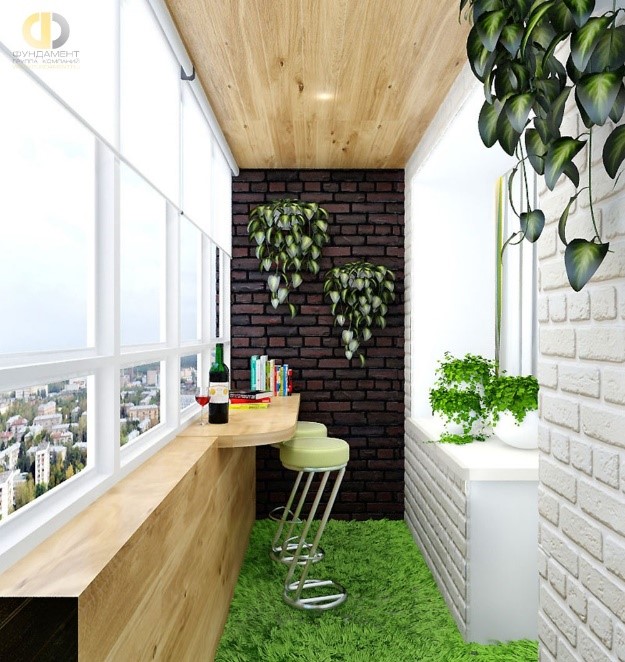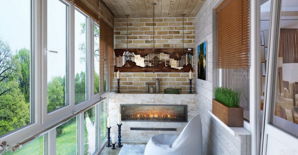 Особенно популярна во внутренней отделке балконов имитация кирпичной кладки. Она изящно смотрится на внешней стене и фасада, и перегородки. Создает уютную и умиротворяющую атмосферу.