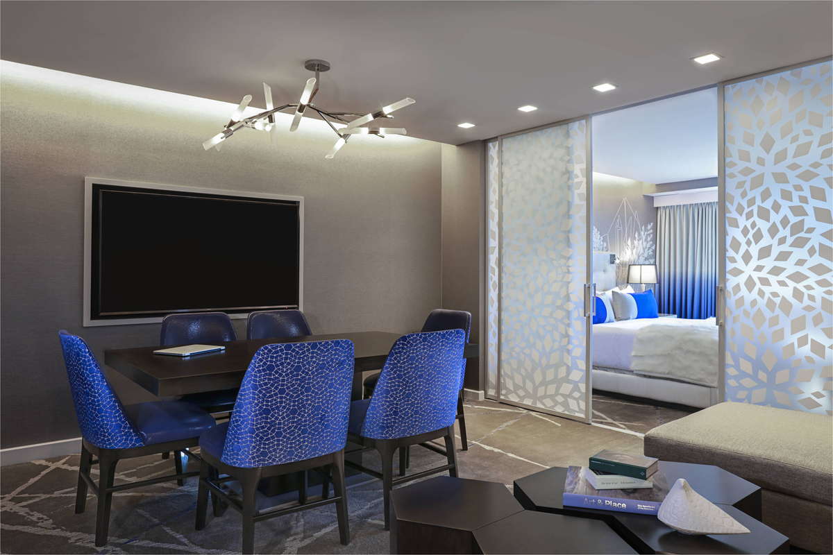 Помимо ресторанов, в отеле есть спа-салоны и частные бассейны. В номерах есть стеклянные стены, через которые вы можете увидеть яркие огни и неоновые вывески. Номера были разработаны в стиле ар-деко, но с современными удобствами, такими как Smart-телевизоры, системы объёмного звучания и минималистский стиль.