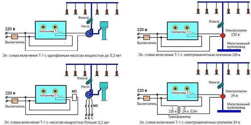 Схемы автоматического дождевания теплиц под управлением контроллера.