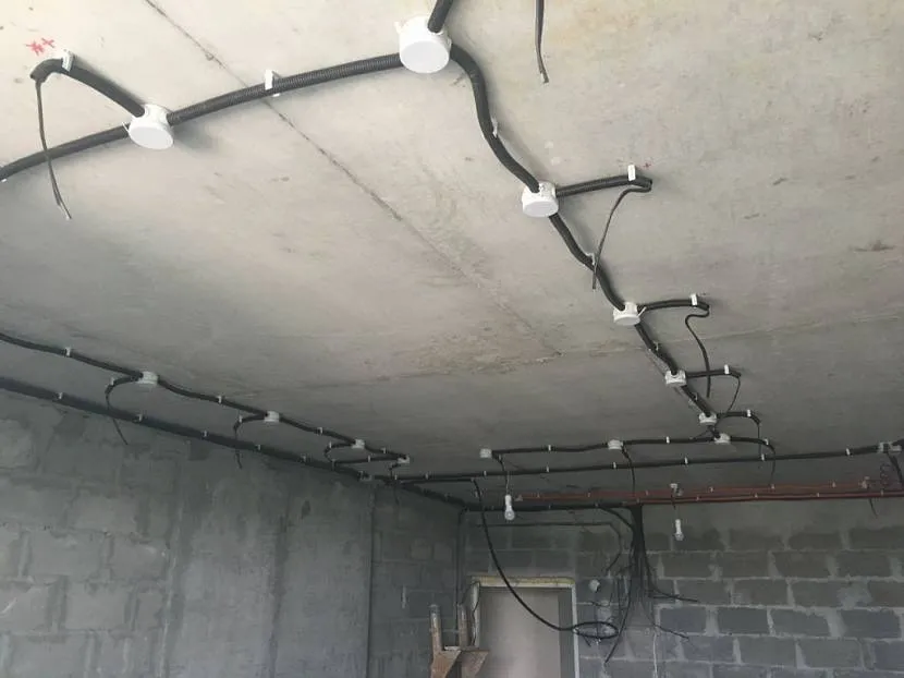 Крепление электропроводки к потолку Источник montazh-sveta.ru