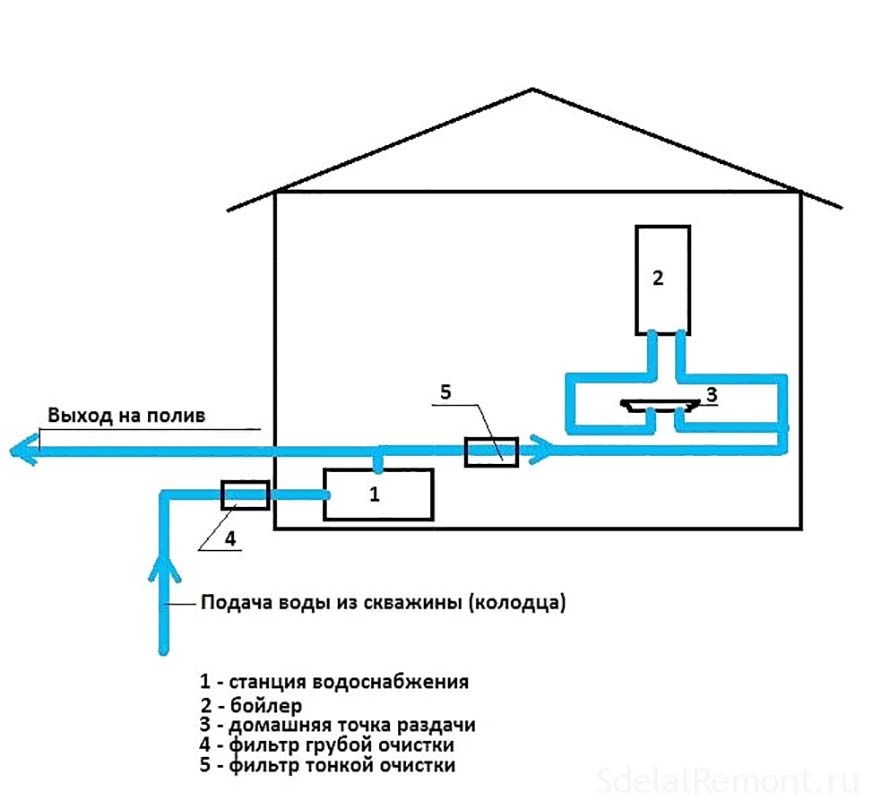 Устройство водопроводной системы частного дома можно разделить на три блока: