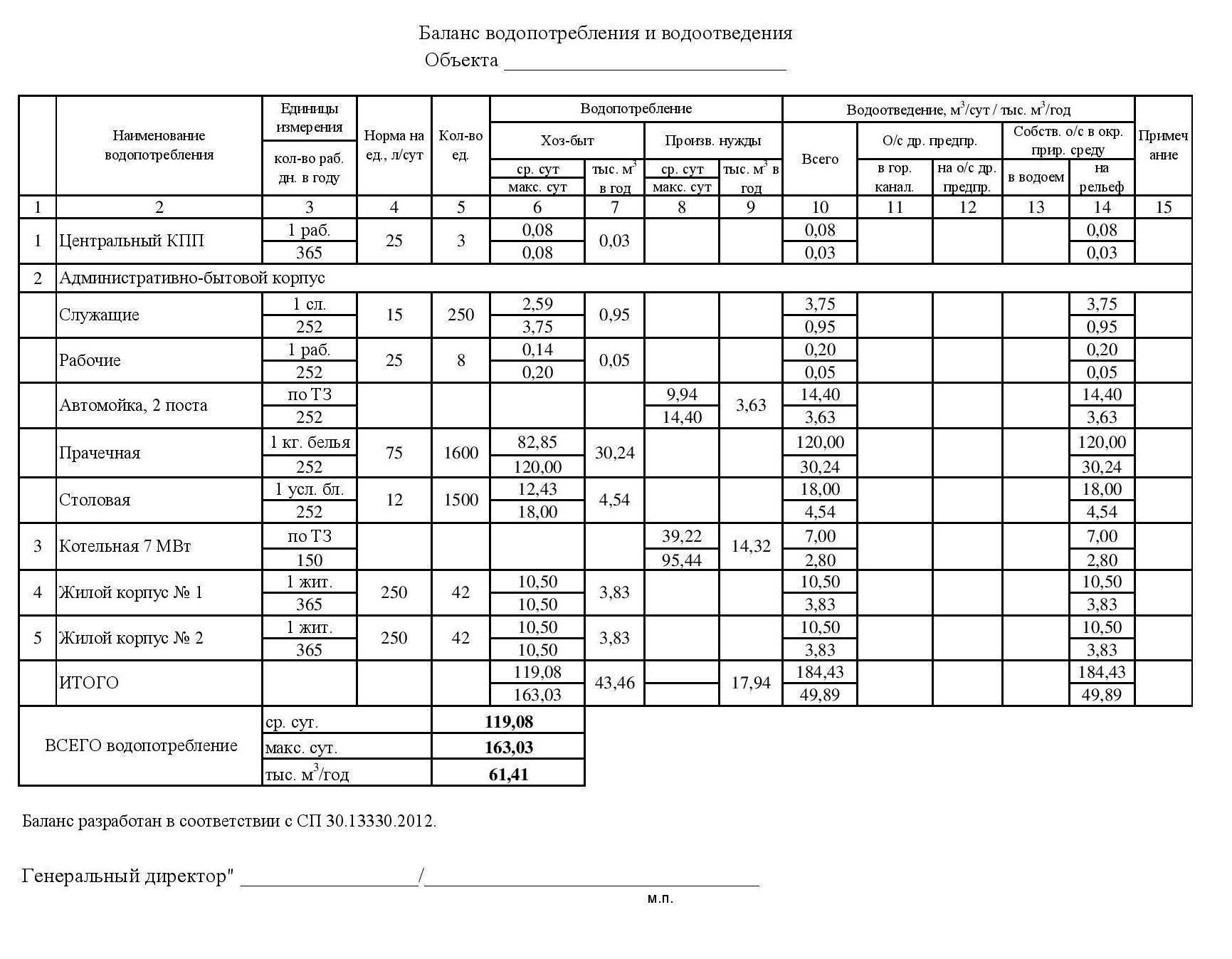 Расчётводохозяйственного баланса ведётся на основании приложения № 3 (скачать) СП 30.13330.2012.