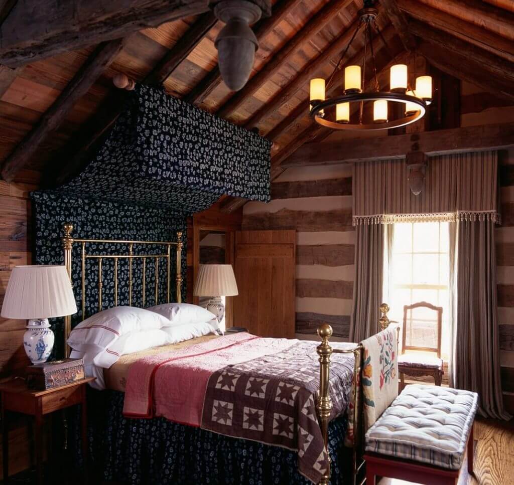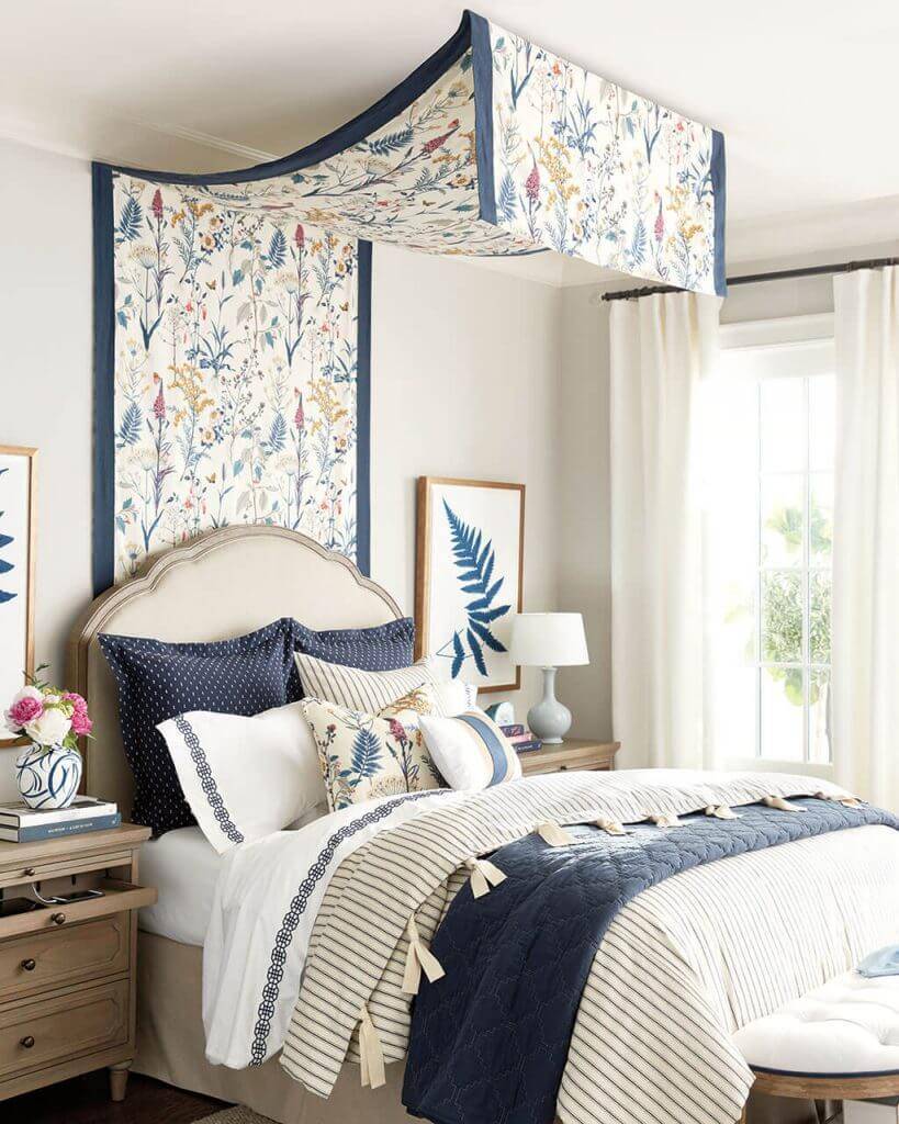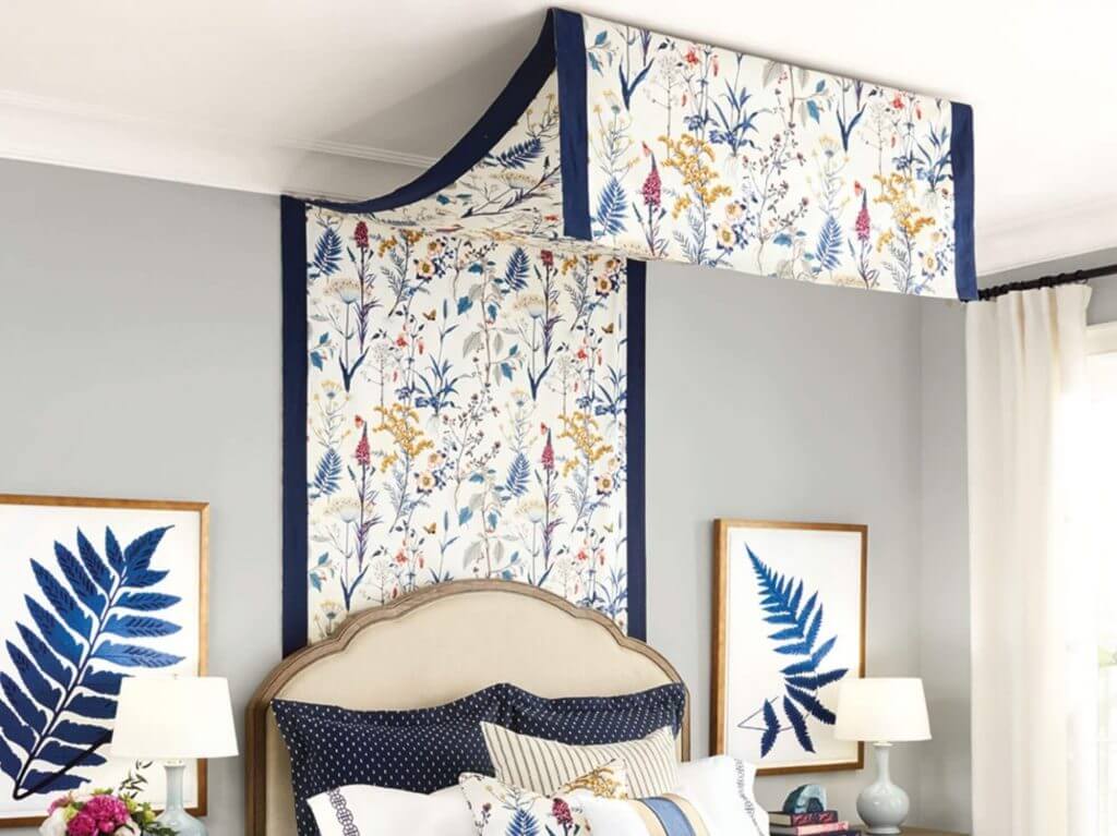 Навес над кроватью отделяет зону для сна, повышает комфорт при нахождении в спальне.