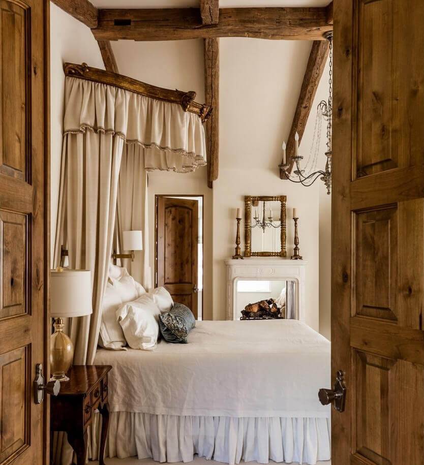 Традиционные функциональные балдахины — это шторы, закрепленные на элементах каркаса кровати со стойками. Такой балдахин позволяет создать максимальную закрытость. Однако это решение является самым дорогим и сложно реализуемым из-за необходимости заказывать или покупать кровать специальной модели.