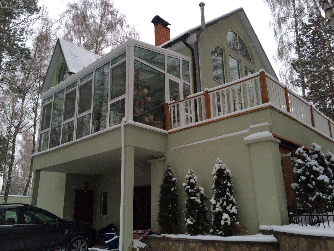 Застекленная площадка защищена от непогоды, посторонних шумов и надоедливых насекомых. Для необычного, эстетичного и оригинального оформления фасадных сооружений могут быть применены различные виды остекления: панорамное, витражное, частичное.