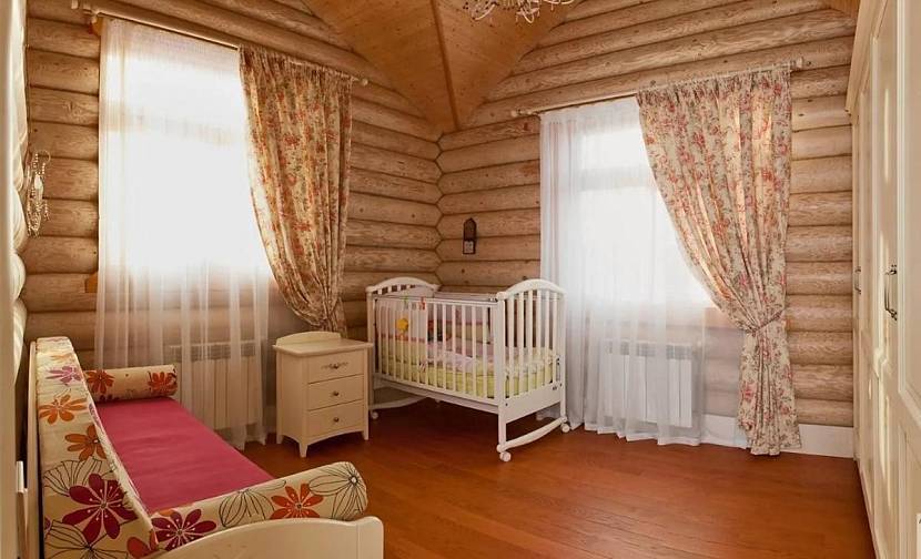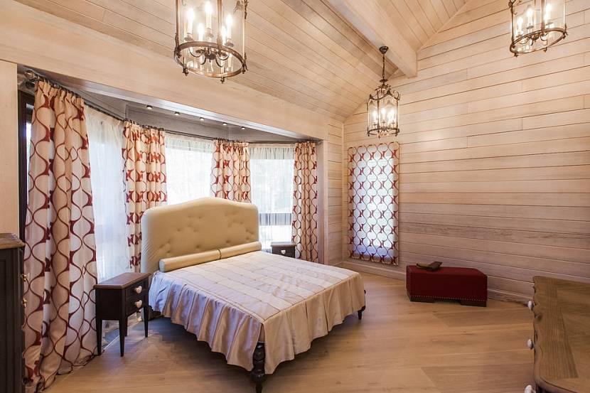 Деревянные дома, комнаты внутри которых облицованы профилированным брусом, могут иметь как большие, так и маленькие оконные проемы. Для оформления занавесками каждого из них существуют свои нюансы.