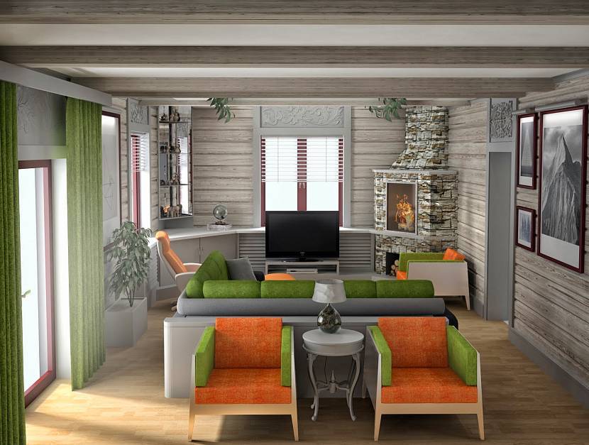 Шторы в доме из брусаИсточник www.archrevue.ru