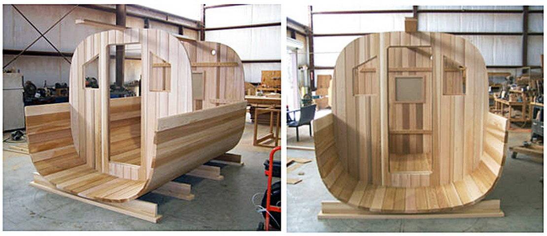Обычно компактные образцы составляют 2 м в длину. Вес такой конструкции составляет примерно 1200—1500 кг. Такие мини-бани подходят для сухих парных на 2 человек