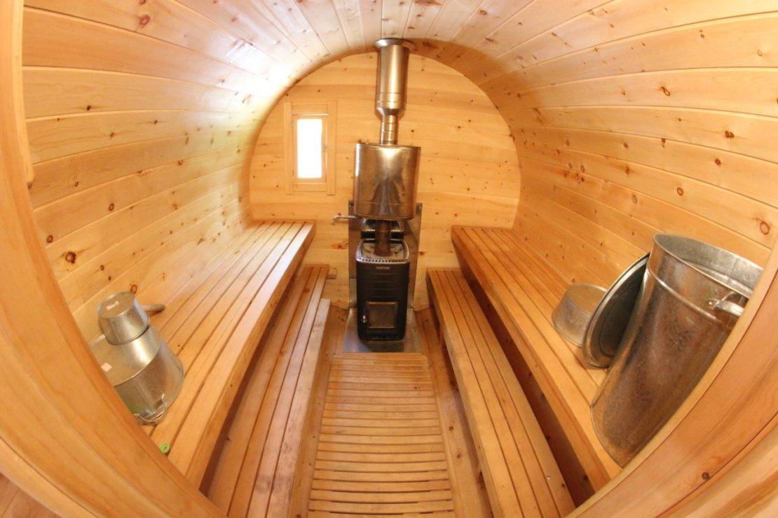 Внутреннее убранство бани-бочки не требует каких-либо изысков, но в то же время приятно находиться в помещении, где всё продумано до мелочей.