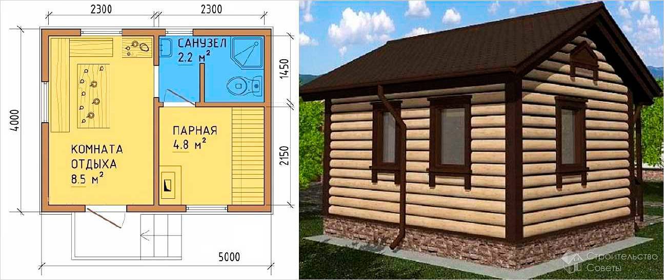 У каждого материала есть свои сильные и слабые стороны, которые можно выгодно использовать при возведении компактной парной.