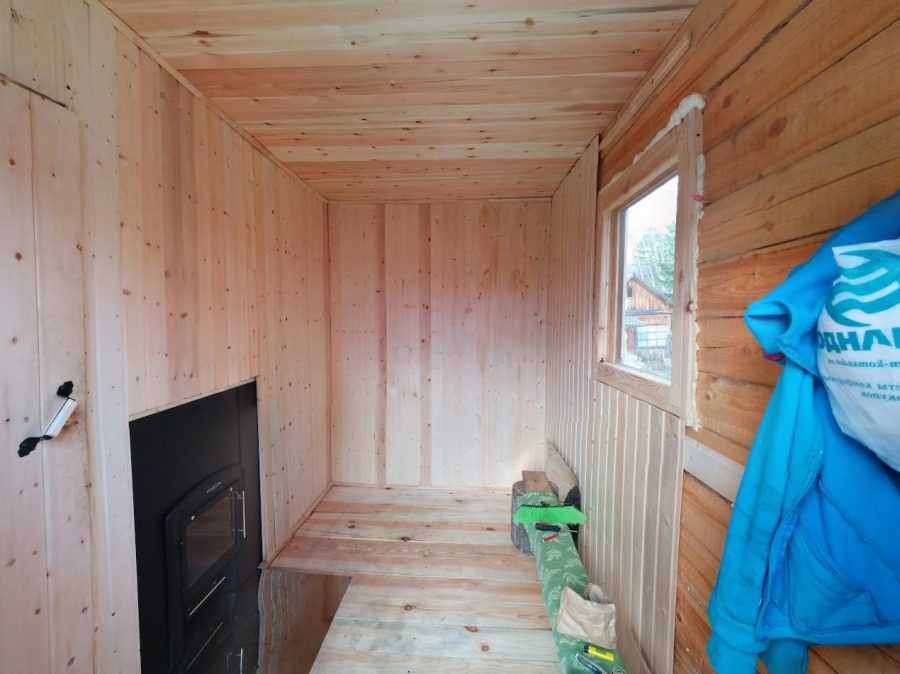 Снаружи мини-баню можно обшить блок-хаусом или вагонкой – эти материалы придадут конструкции эстетичный вид.