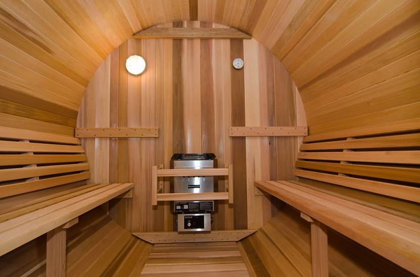 Довольно популярны стали бани-бочки. Они компактны – подойдут для любого участка. У них меньше размеры парной при той же высоте и длине, что у обычной. А чтобы протопить такую баньку, надо меньше времени.