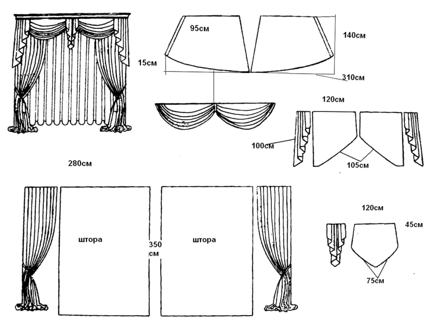 Также существуют выкройки ламбрекенов с закрепившимися названиями: