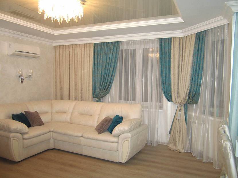 Если говорить о выборе цвета, то в шторном дизайне остаются актуальными трио и дуэты в одной гамме. Хороший пример: