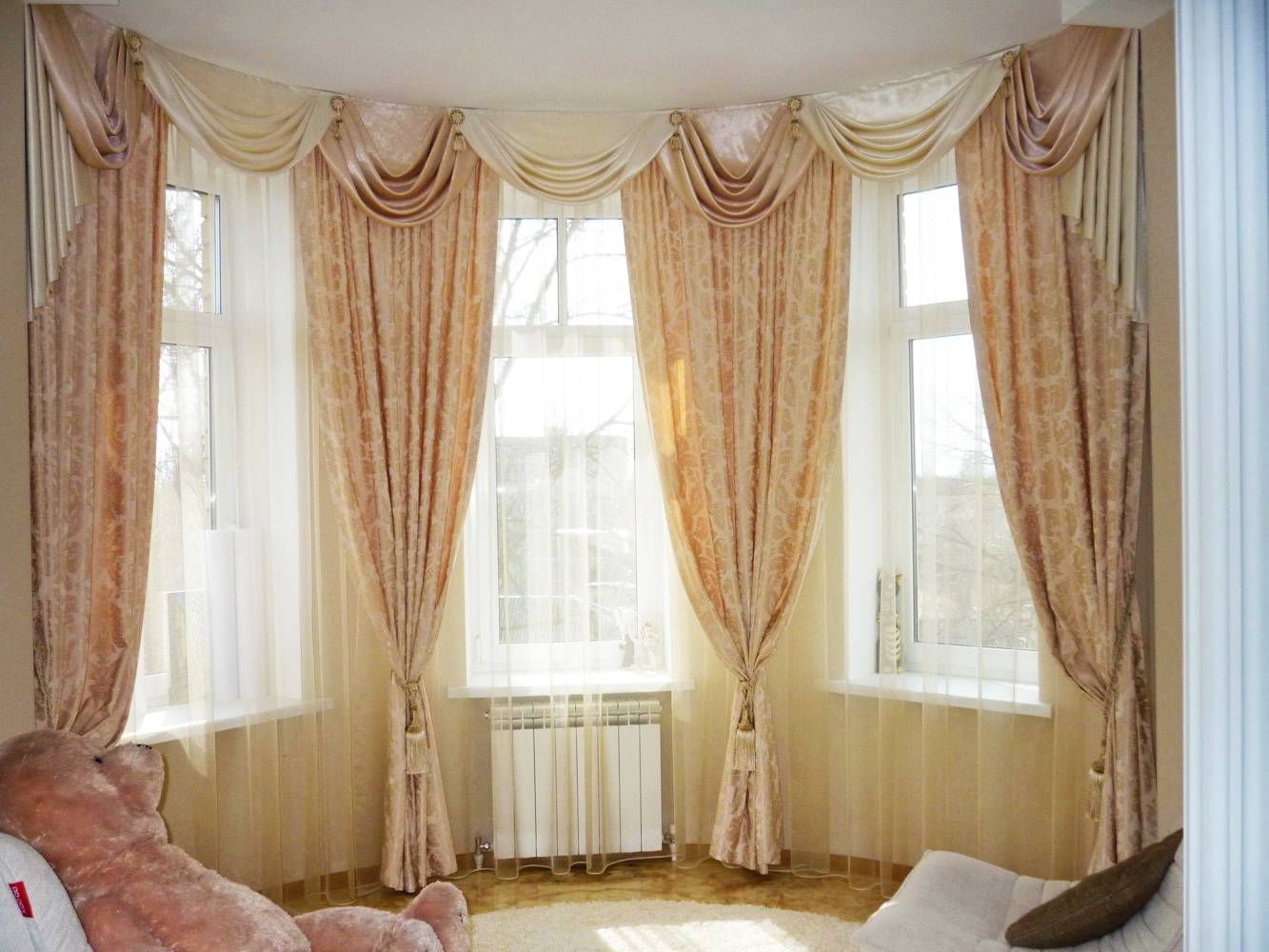 Кокилье. Применяется для широких окон, где в середине делается драпировка с острым углом. Лучше всего подходят ткани на основе шелка.
