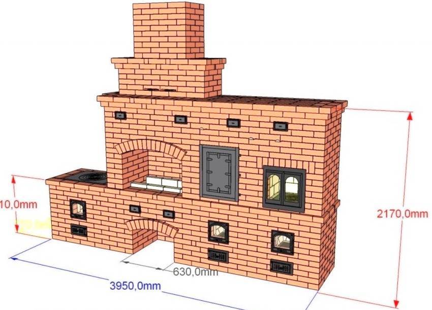 Проекты, чертежи и размеры угловых печей-барбекю с казаном, мангалом из кирпича
