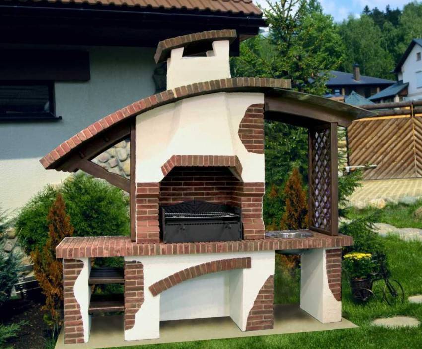 Также следует продумать наличие крыши. Существуют варианты с открытым и закрытым типом жаровни. Во втором случае конструкция печи для шашлыка из кирпича внешне напоминает камин. Преимущества подобного проекта очевидны, поскольку в случае дождя очаг будет защищен от осадков. Чтобы такая конструкция функционировала должным образом, обязательно придется обустроить дымоход.
