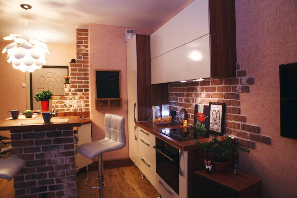 - Барная мини-стойка подходит для маленькой кухни. Зачастую это своеобразные «крылья» длиной не больше 1 м, которые вмещают 1-2 человек.