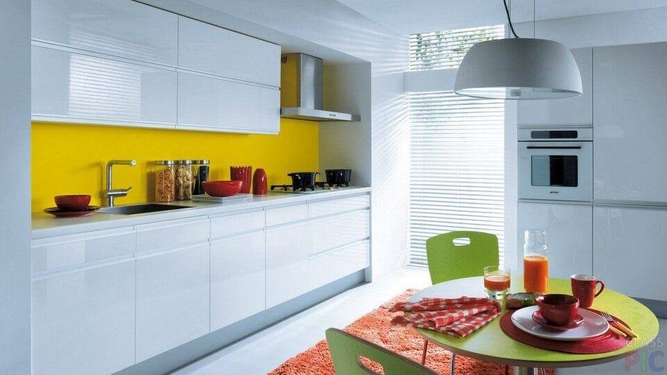 - Универсальность – стеклянные фартуки подойдут для любой кухни.