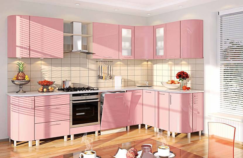Розовая кухня в стиле хай-текИсточник mebel-rubikon.ru