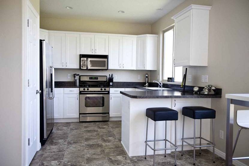 | 4. | Кухонный пол лучше делать наливной, ламинат, из керамогранита или плитки. |