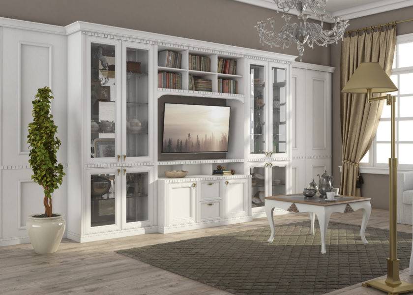 Кожаная белая мебель в интерьере гостиной считается особым шиком, особенно если она обустроена в одном из современных или исторических стилей. Непревзойденными мастерами в изготовлении элегантной гарнитуров признаны итальянские «мебельеро», диктующие моду на элитный товар.