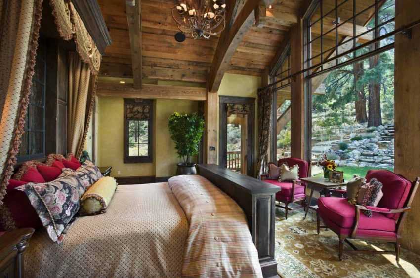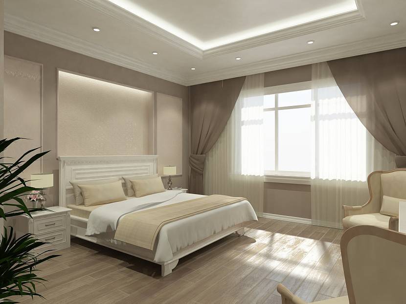Для него характерен комфорт, отсутствие технологических новшеств и ярких акцентов. В классической спальне стены и потолок лучше оформить в светлых тонах, по возможности добавив лепнины. А вот покрывало, пуфики, ковер и шторы должны быть в сиреневых тонах. Мебель должна быть из натуральных материалов, в коричневых оттенках. Добавить роскоши можно, если ножки кровати и тумбочек покрыть позолотой. Золотистыми могут быть и другие элементы декора: светильники, статуэтки, подсвечники и т. п.