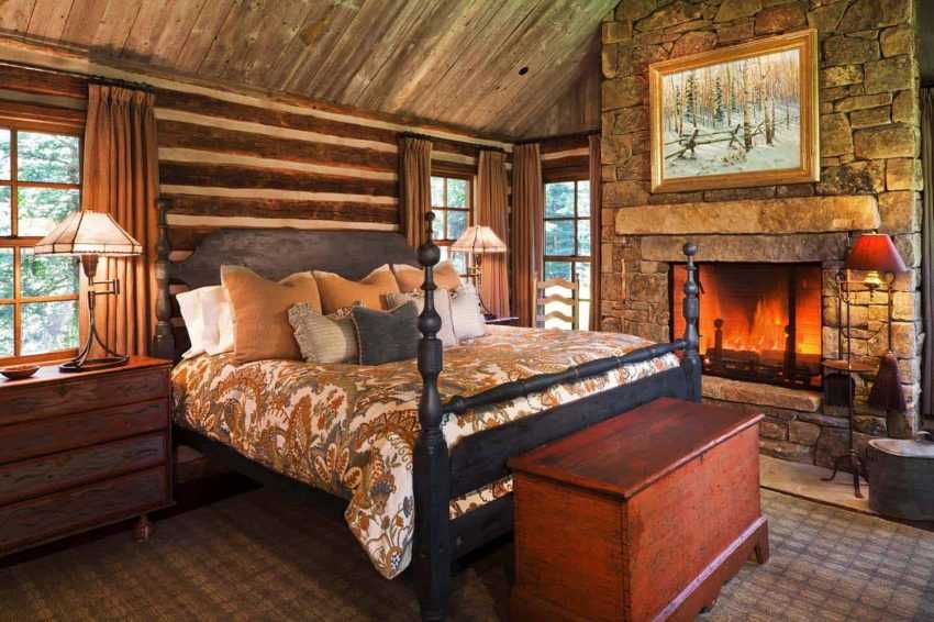- Деревянные панели на половину высоты стен сразу «согреют» спальню.