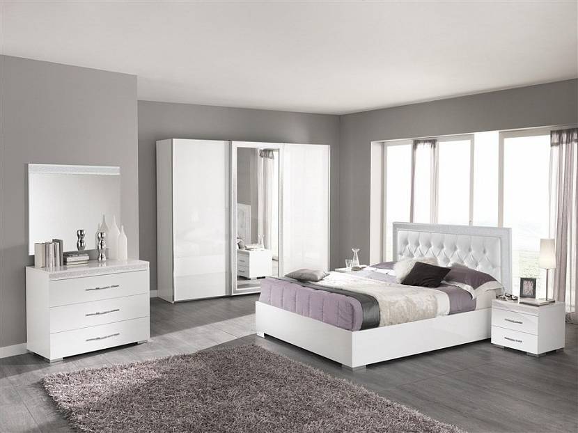 - белый цвет является хорошим фоном для других оттенков. Если решено оформить дизайн спальни с белой мебелью, то отделку можно подобрать практически в любом сочетании. Такие изделия будут выгодно смотреться с контрастными вариантами, например, с черными полами. Они также хорошо впишутся в интерьер со светлыми обоями и потолками;