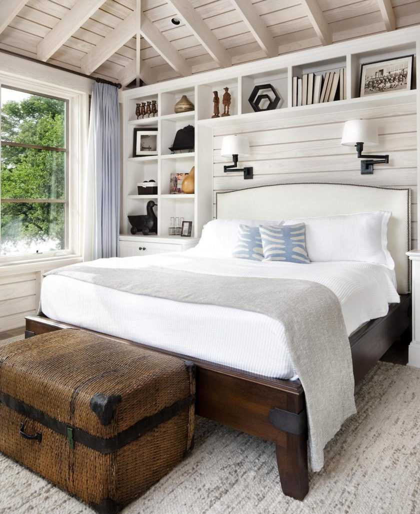 - Основным цветом должен быть белый. Он позволит добавить комнате объема, сделает ее визуально шире и просторнее. Вдобавок спальня будет казаться намного светлее.