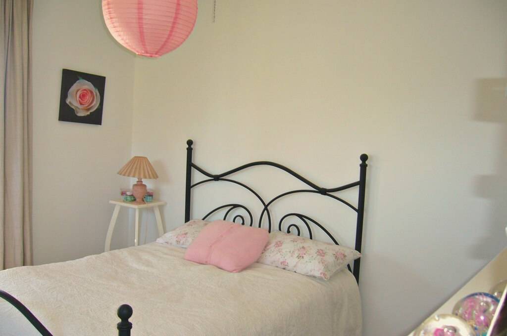 Романтика комнаты будет подчеркнута воздушным текстилем. Мягкие коврики придадут спальне уют. Белые стены можно разнообразить обоями с рельефным тонким цветочным узором, пастельными подушками в тонких узорах, цветам в вазе или романтической картиной на стене.