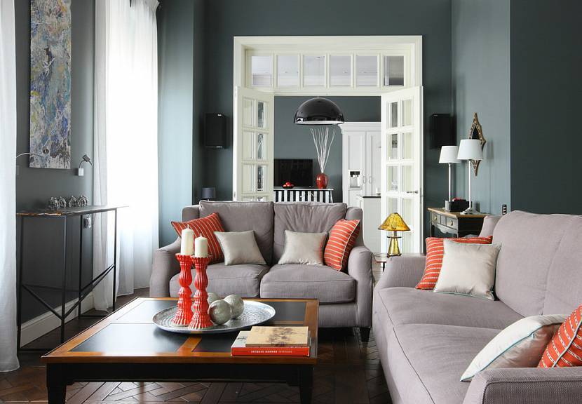 Главное – не переборщить, достаточно несколько таких акцентов в одной или двух цветовых гаммах. При светлых стенах лучше использовать пол потемнее.