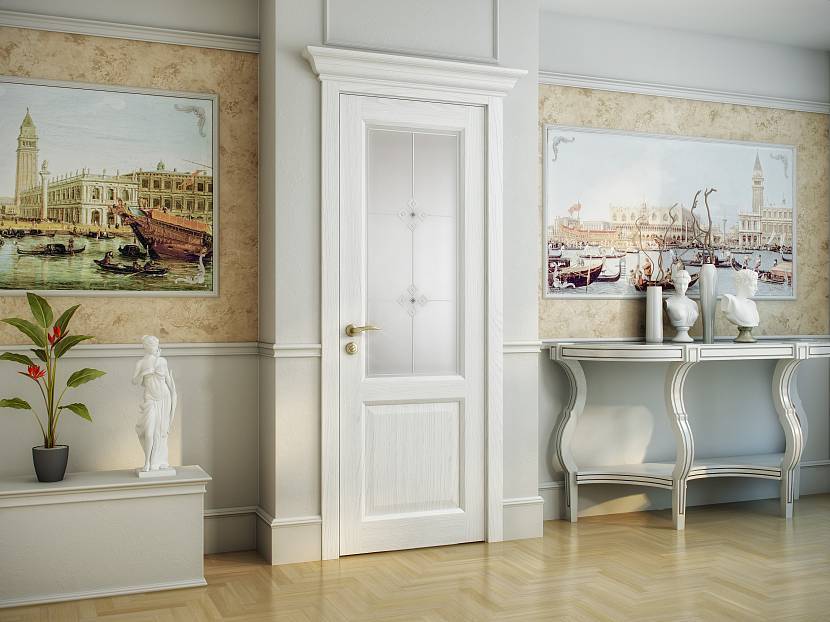 Классика, неоклассика. Белое дверное полотно займет достойное место в интерьере, где преобладает симметрия, четкие линии и чистые цвета. К месту будут глянцевые и матовые модели со строгим геометрическим декором, стеклянными вставками.