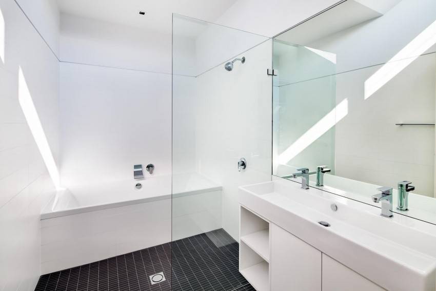 Преобладающий белый цвет в интерьере ванной комнаты сможет визуально расширить ее границы