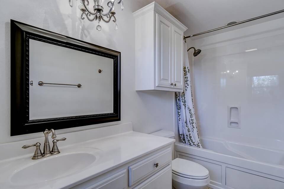 Дополните вашу ванную комнату большим зеркалом и небольшими шкафчиками, они помогут вам спрятать не слишком приятные для глаз моменты, такие, как грязное белье или носки, и разные предметы личной гигиены, которые так же лучше скрыть: крема, маски, зубные щетки, косметику и прочее.