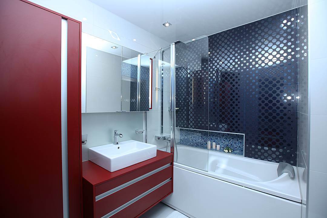 Как влияет размер помещения на процентное соотношение белого цвета и сопутствующих оттенков? Если ванная небольшая, стены и потолок лучше делать нейтральными, а пол разбавленным с ярким тоном.