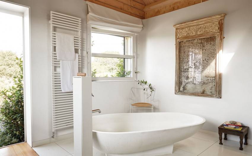 Как уже не раз было замечено ранее, дерево – прекрасный способ сделать белую ванну уютнее. Особенно хорошо оно смотрится в интерьерах в стиле эко, прованс и минимализм.