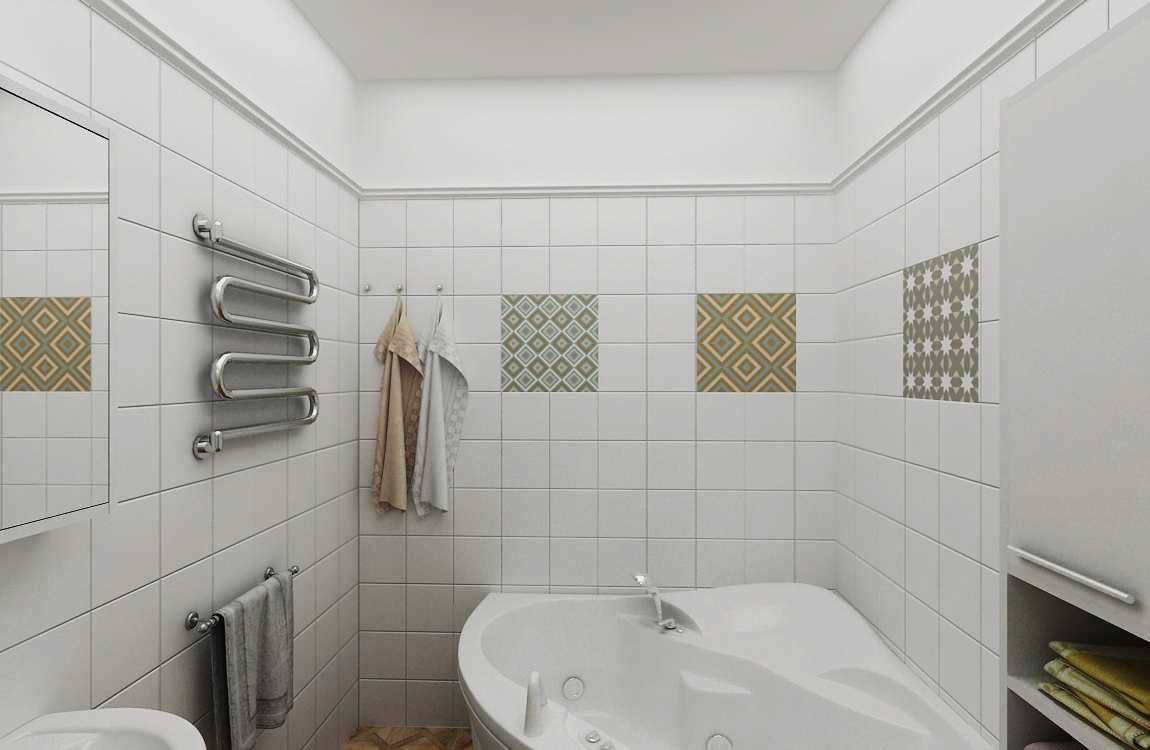 Белый отлично сочетается с любыми другими цветами. Сделать помещение игривым и веселым можно, повесив ярко желтые, салатовые полотенца, занавески, постелить коврик.