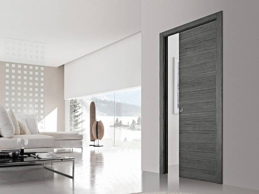 Раздвижная. Дверной короб монтируется таким образом, чтобы полотно при открытии пряталось внутри стены. Такой вариант удобен тем, что не задействуется окружающее пространство, но при этом нужны довольно толстые стены и участие профессионала при монтаже.