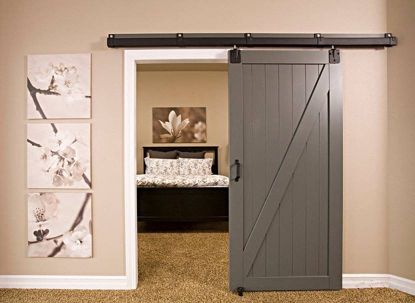 Подвесная серая дверь в спальнеИсточник italstroy.ru
