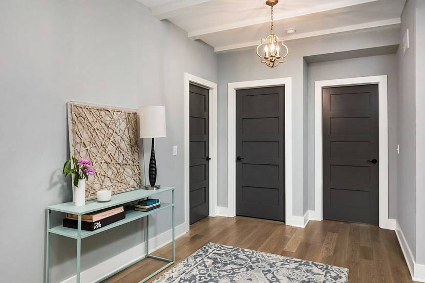 Серые двери в интерьере практически любого помещения выглядят идеально. Это возможно благодаря широкому разнообразию оттенков цвета, многие из которых даже не имеют названия.