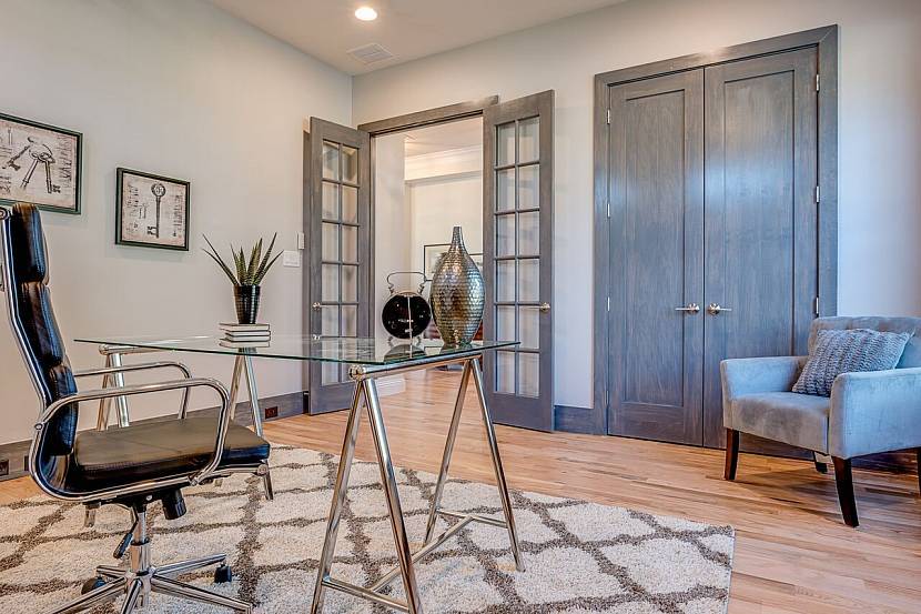 Двустворчатые серые двери в кабинетеИсточник design-homes.ru