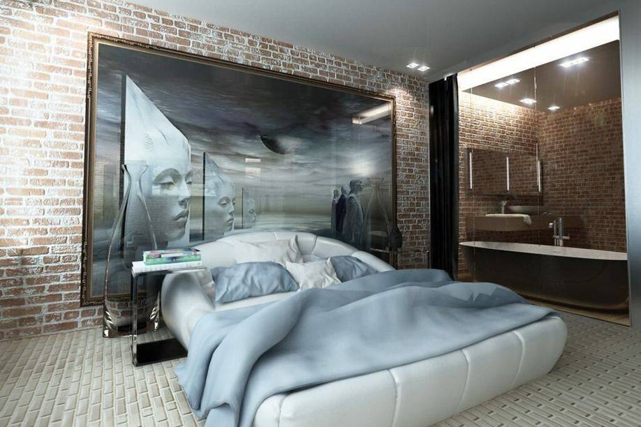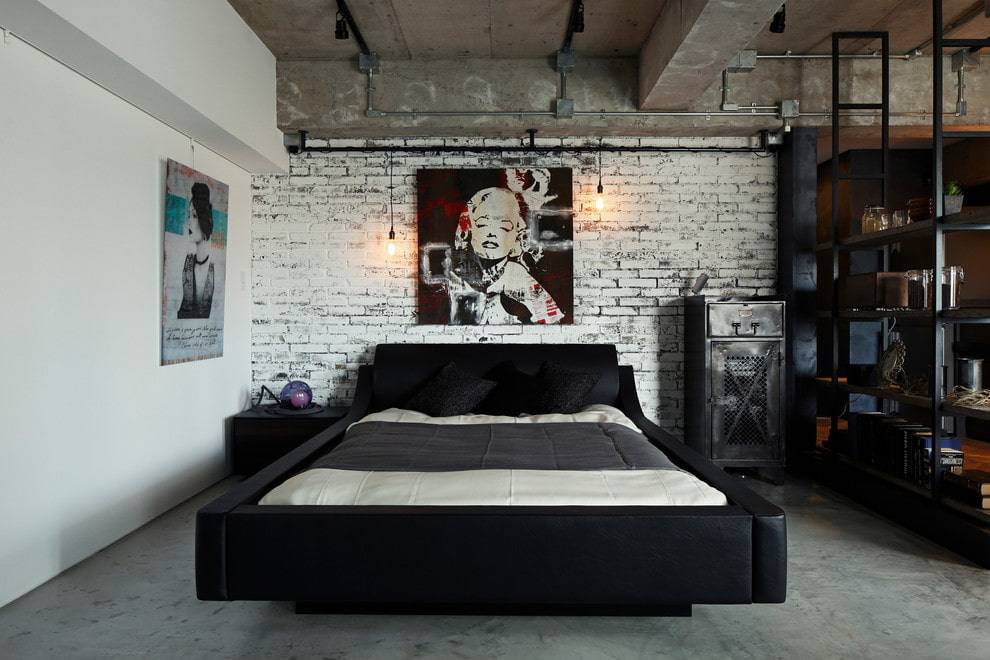 Интерьер в стиле лофт имеет незавершенный и необжитой облик, который придает спальне особый шарм.