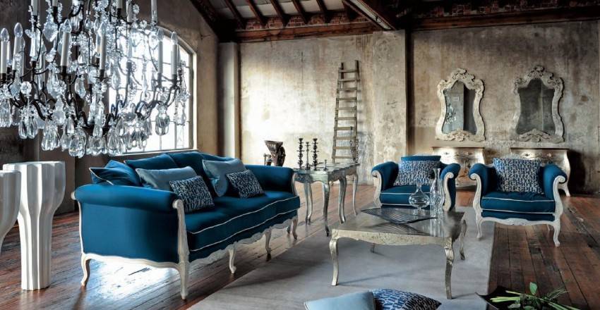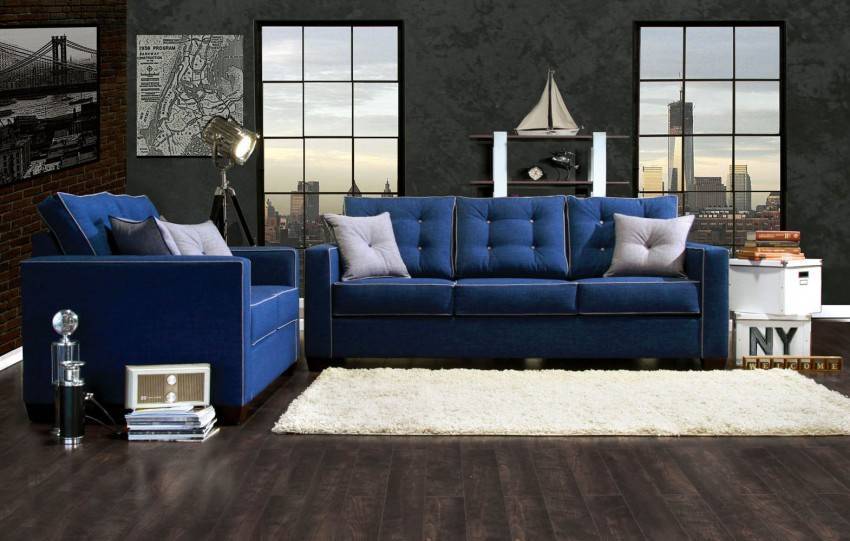 Эти материалы используются для обивки диванов округлой формы с высокими спинками и мягкими подлокотниками. Синяя кожа выбирается тогда, когда нужно подчеркнуть строгость делового стиля. Такие предметы, как правило, имеют лаконичный дизайн и строгие геометрические формы. Другие фактуры (замша, джинс) в синем исполнении тоже будут смотреться весьма эффектно. Но любая гостиная с синим диваном не будет агрессивной и вычурной.