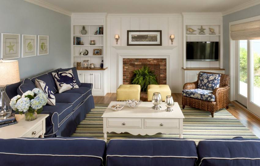 Используя нейтральные тона в фоне интерьера, помните об осторожности в применении белого цвета. Излишнее количество белого на стенах и синего в аксессуарах, может превратить комнату в слишком холодную и отрешенную