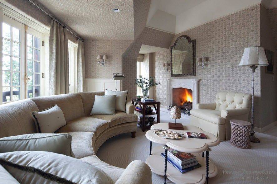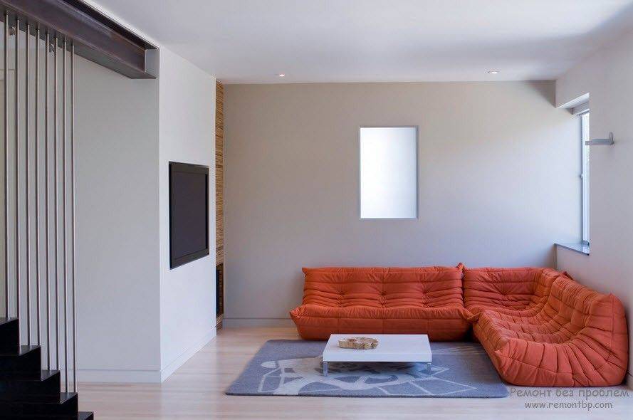 В последнее время всё больше отдается предпочтение округлым диванам, которые придают помещению комфорт и уют. Мягкие, круглые диваны – идеальное решение только для больших комнат, где их располагают по центру.