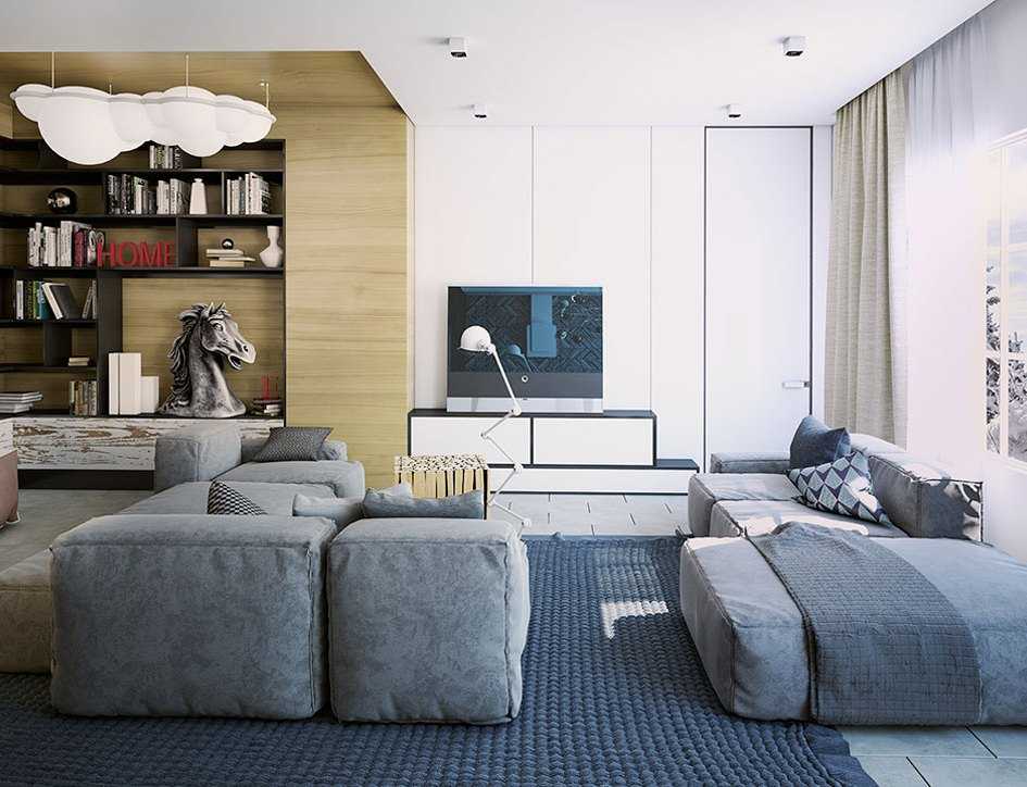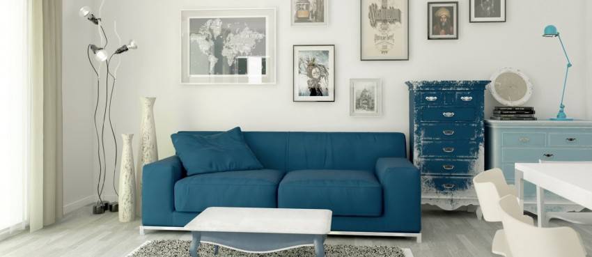 Перед тем как приобретать синий диван, необходимо определиться с дизайном комнаты, как вариант гостиная может быть монохромная, то есть «поиграть» с тонами синего и голубого.