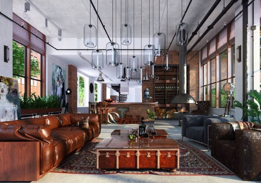 Посмотрите, как органично насыщенный синий диван вписывается в концепцию ультрамодного лофта. На фото видно, что темно-коричневые стены являются хорошим фоном для такого решения. Холодные оттенки красиво вливаются в уже готовые интерьеры, поэтому смело можно покупать синий диван для наполнения гостиной.