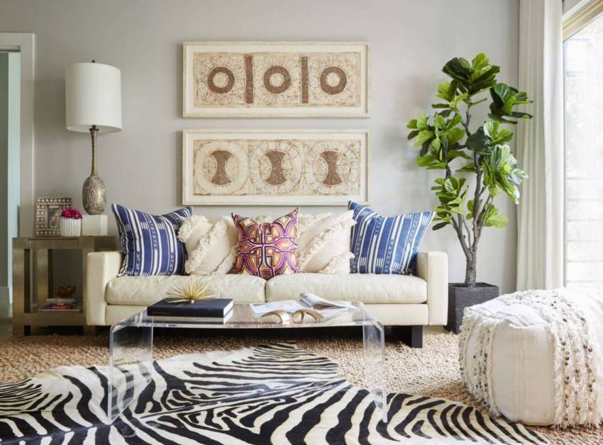Этнический и колониальный стили, они достаточно необычны и использование черных диванов в подобных интерьерах не редкость. Любители этого стиля покупают преимущественно кожаную мебель. Кожаная обивка идеально сочетается с соответствующими этнике предметами. Подходит под дерево, необычные ковры в виде шкур животных.