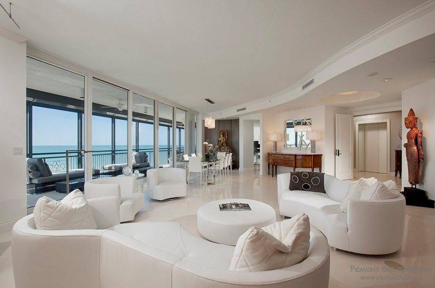 Особой роскошью считаются белоснежные диваны. Такие изделия в любом пространстве занимают главенствующие позиции